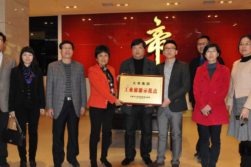1月7日,大帝集团顺利通过石狮市"质量石狮·文化进企业"活动领导小组的各项验收,正式被授予"工业旅游示范点"称号。石狮市副市长庄宝玲参加活动,并亲自为集团授牌。帝牌(中国)有限公司总裁吕锜、集团工会主席吴尔德等公司领导参加了授牌仪式。